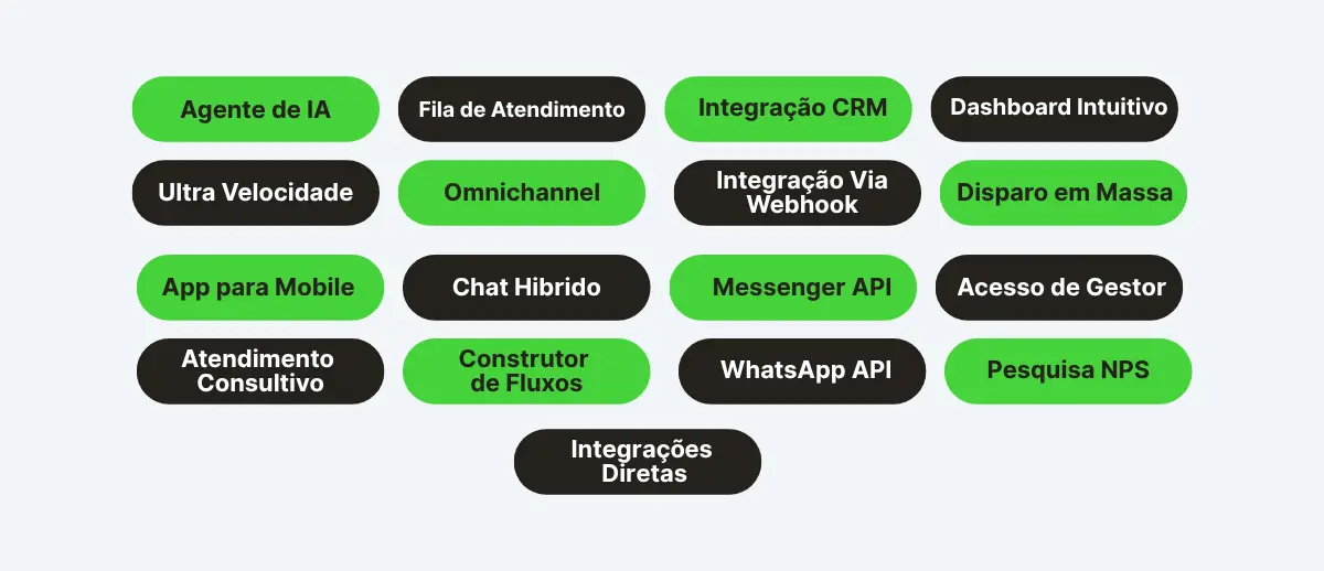 Nossa plataformaintuitiva reúne WhatsApp, Instagram, Facebook e Chatbot em um único lugar, automatizando tarefas e facilitando o atendimento. Assim, sua equipe ganha tempo para se concentrar no que realmente importa: fechar negócios!